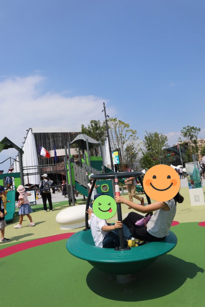 付近にはボーネルンドの遊具が置いてあり9歳娘と3歳息子は20分ほど遊んでいました。猛暑の中待つ親は大変でしたがその間に次の計画を立てました。